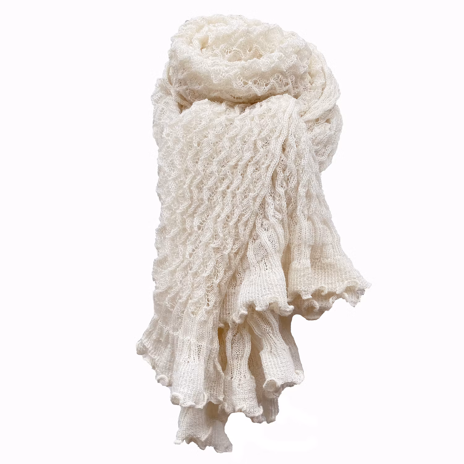 Luftig och mjuk halsduk naturvit, spetsstickad i 100% ull