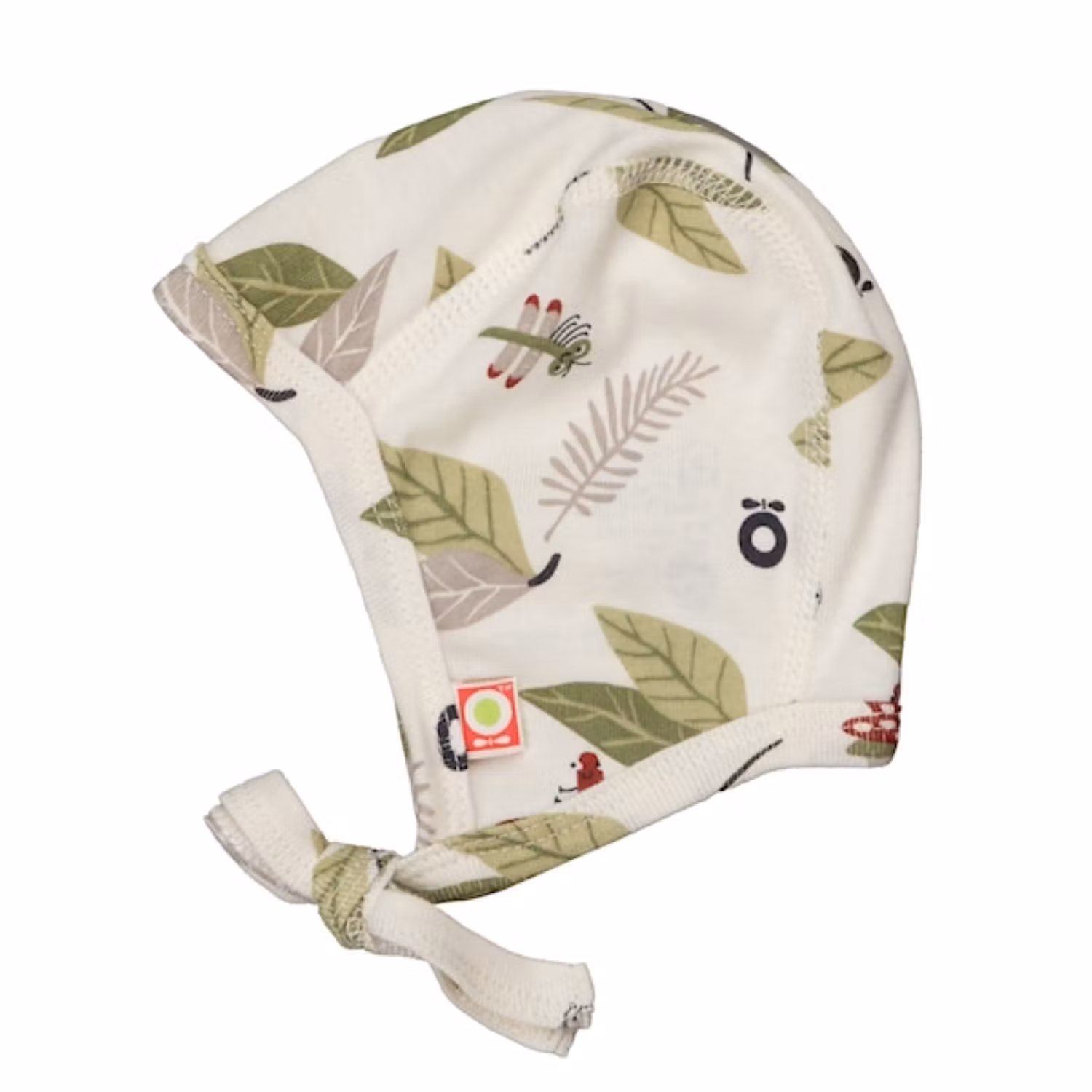 Hjälmmössa baby 100% ekologisk bomull bladmönster