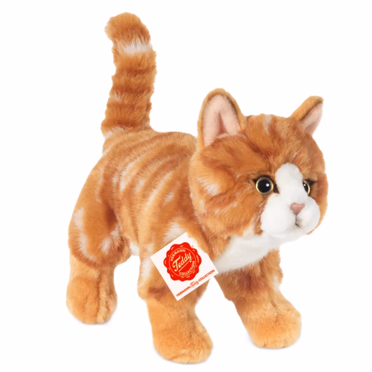 Denna charmiga gosedjurskatt från Teddy Hermann är designad med stor omsorg för detaljer och kvalitet. Med sin mjuka päls, randiga orangea färg och vänliga uttryck blir den snabbt en favorit hos både barn och vuxna.