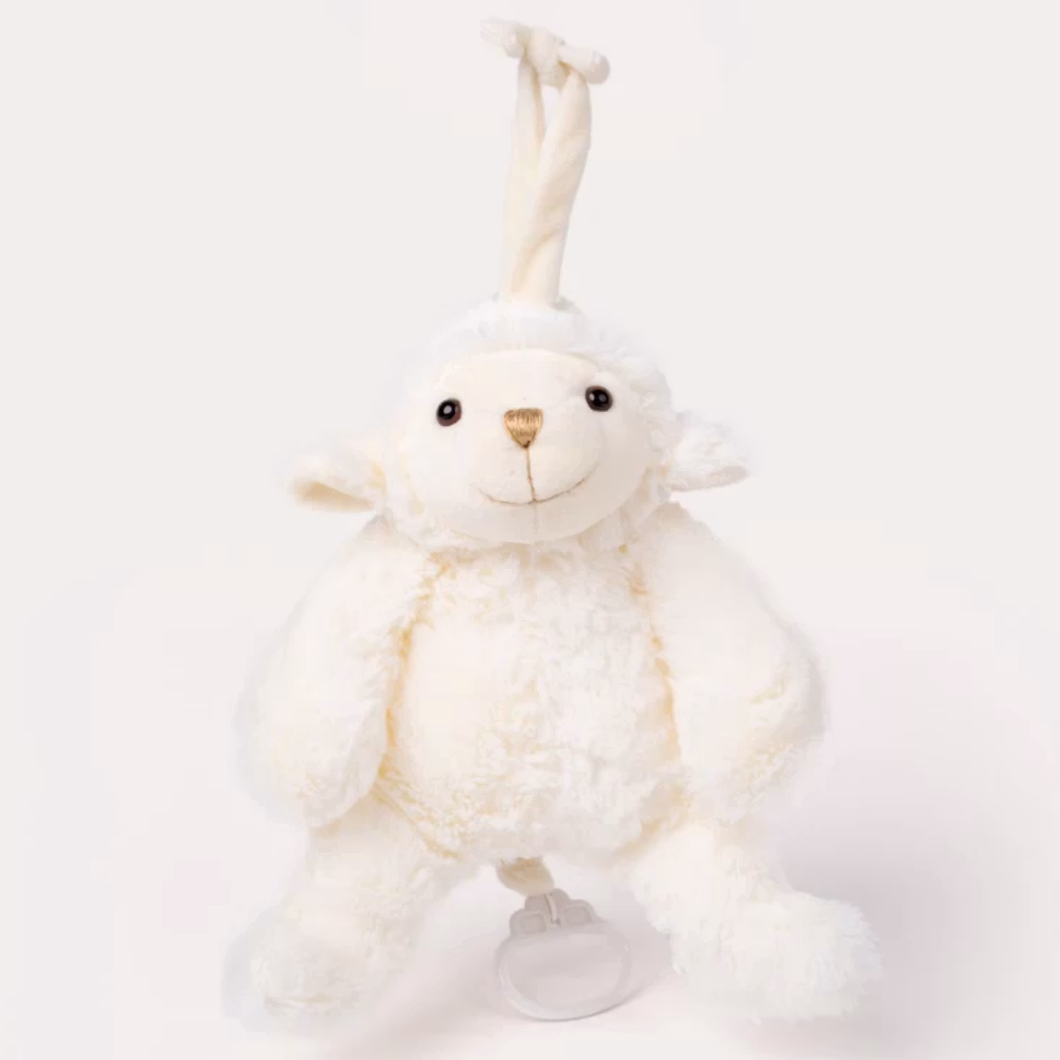 Speldosan Hampe spelar den lugna melodin "Rock-a-bye-baby", vilket skapar en fridfull atmosfär för ditt barn vid sovdags. Med knytband upptill kan den enkelt fästas vid sängen eller vaggan, vilket gör den både praktisk och trygg. Perfekt som gåva till nyfödda, där den blir en sovkompis som ger ro och trygghet.