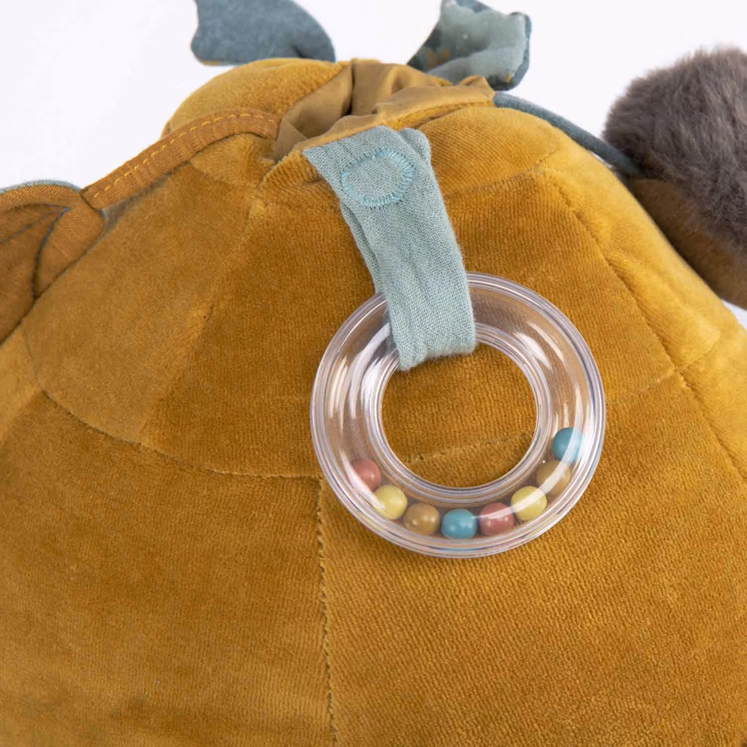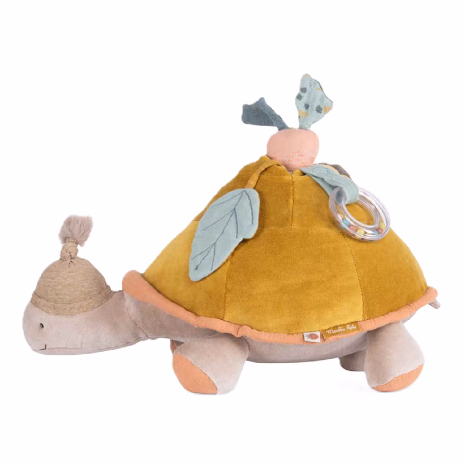 Mjuk aktivitetssköldpadda från Moulin Roty med spegel & skallra