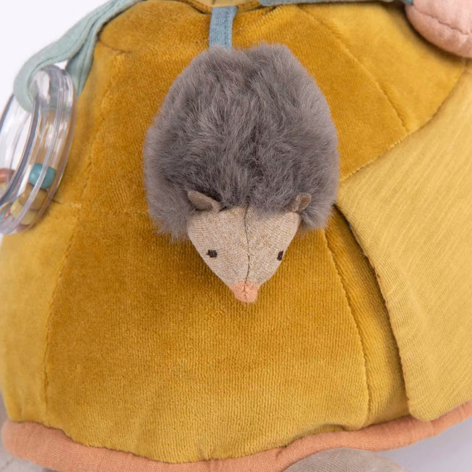 Ovanpå sitter en liten söt igelkott som följer med på alla äventyr. Sköldpaddan är lätt att ta med och passar lika bra i hemmet som i vagnen.