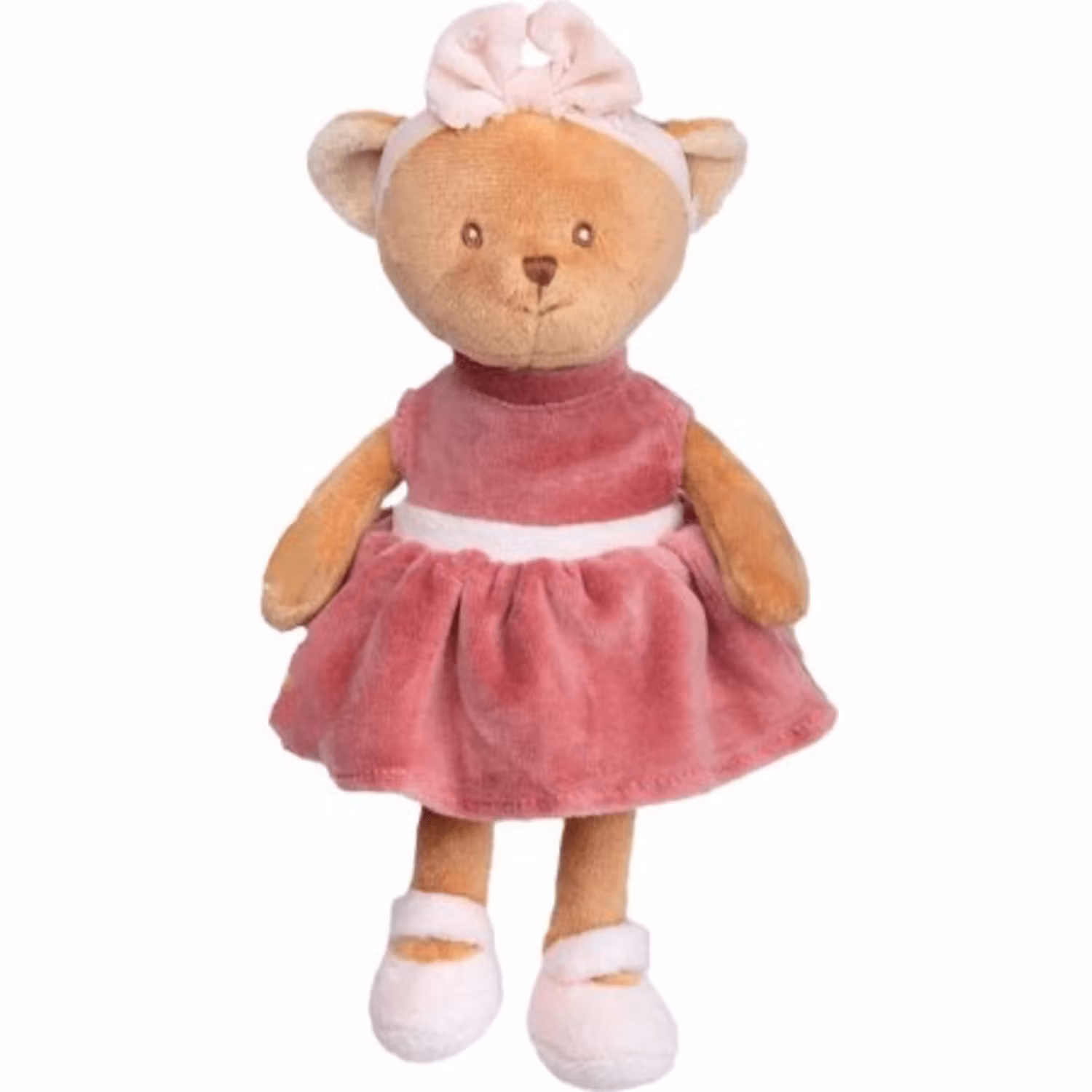 Mjuk liten nallebjörn med rosett och mörkrosa klänning. För varje tillfälle finns ett Bukowski-gosedejur som kan vara en mjuk kompis. Bukowski-nallarna och deras övriga gosedjur är mycket uppskattade nyfödd-presenter. Produkten är noggrant utvald för att hålla hög kvalitet.
