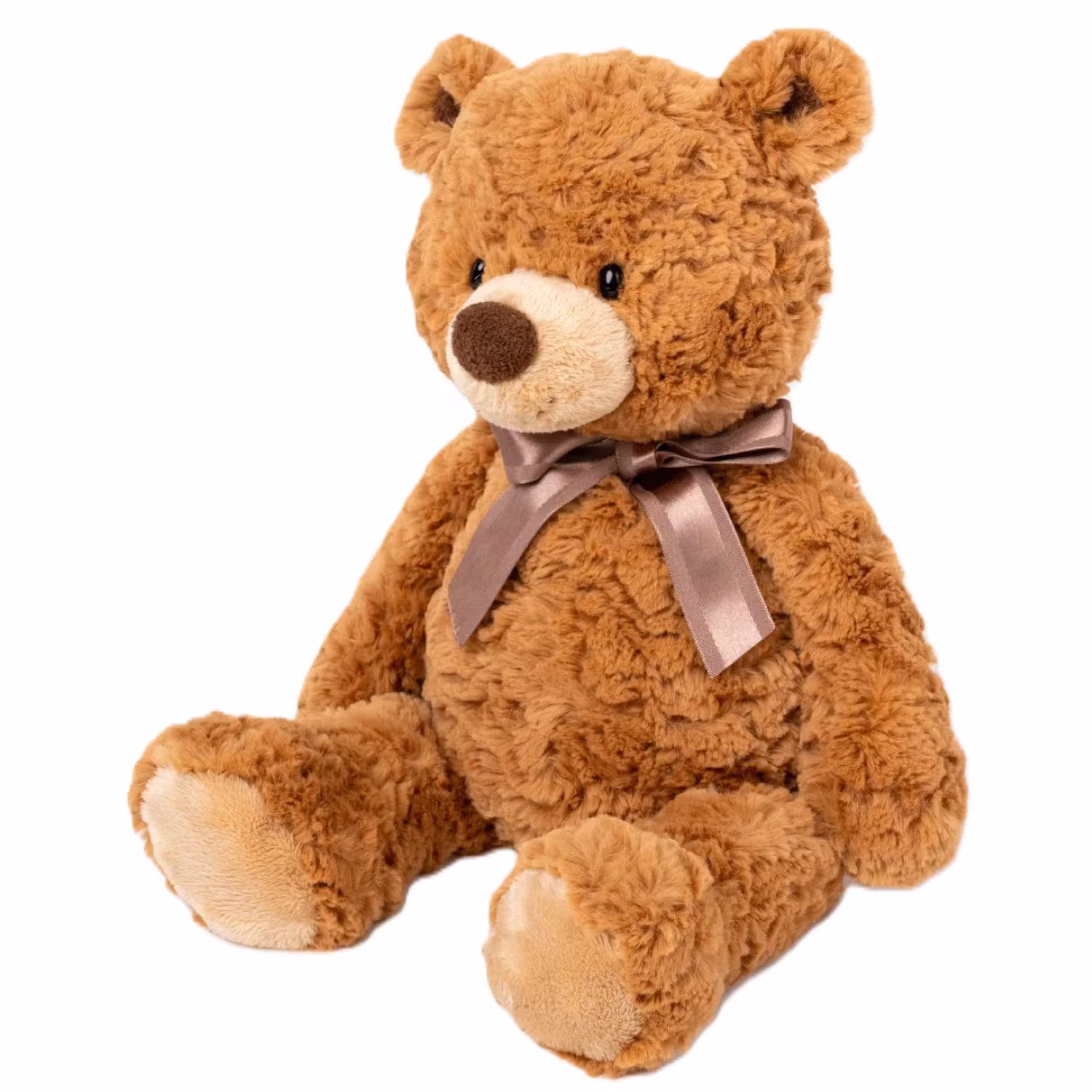 Den här mysiga nallen utstrålar trygghet, värme och omtanke. Den mjuka, lockiga pälsen i en vacker brun nyans, de vänliga ögonen och den lilla söta nosen gör honom oemotståndlig från första stund. Det stilrena sidenbandet runt halsen sätter pricken över i och ger ett elegant uttryck.