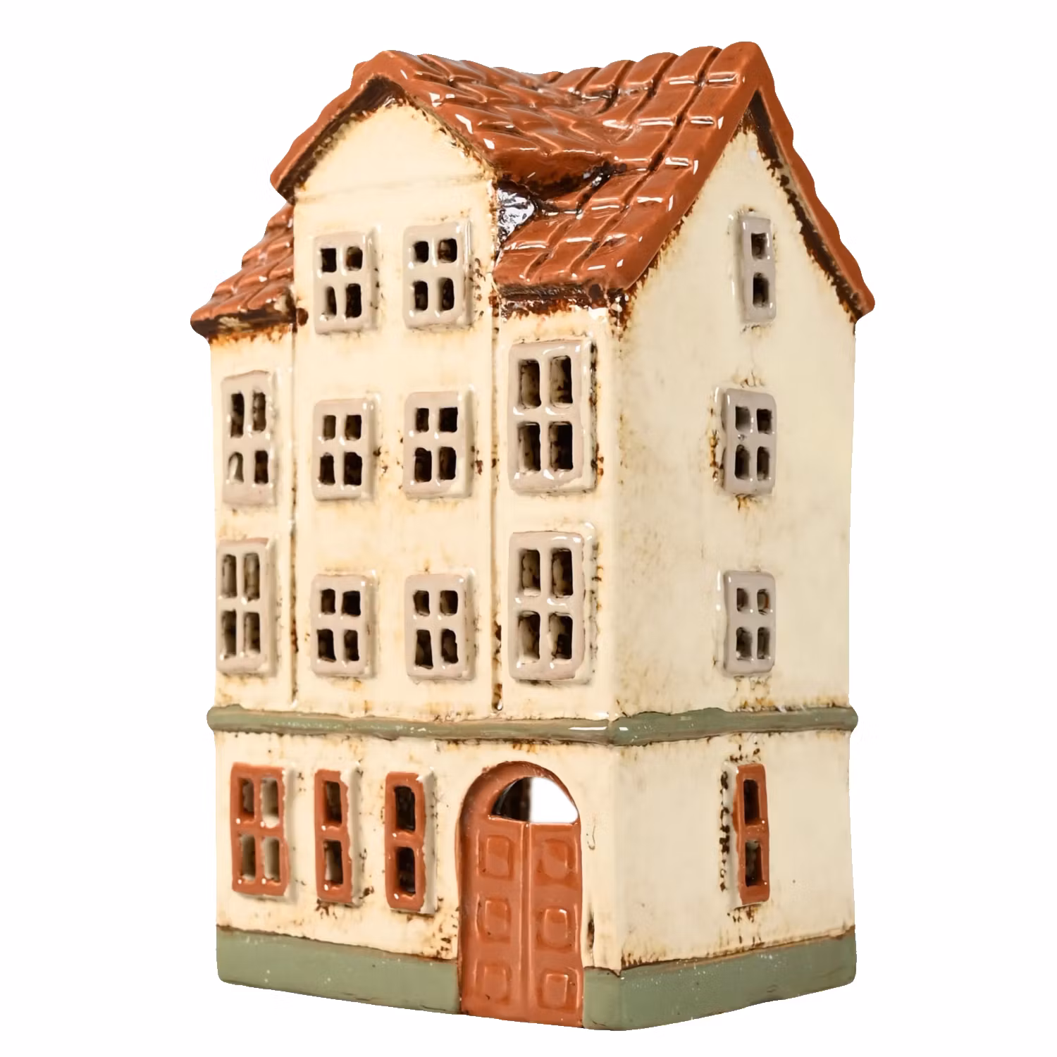 Cremevitt keramikhus till värmeljus – mysig dekoration året runt