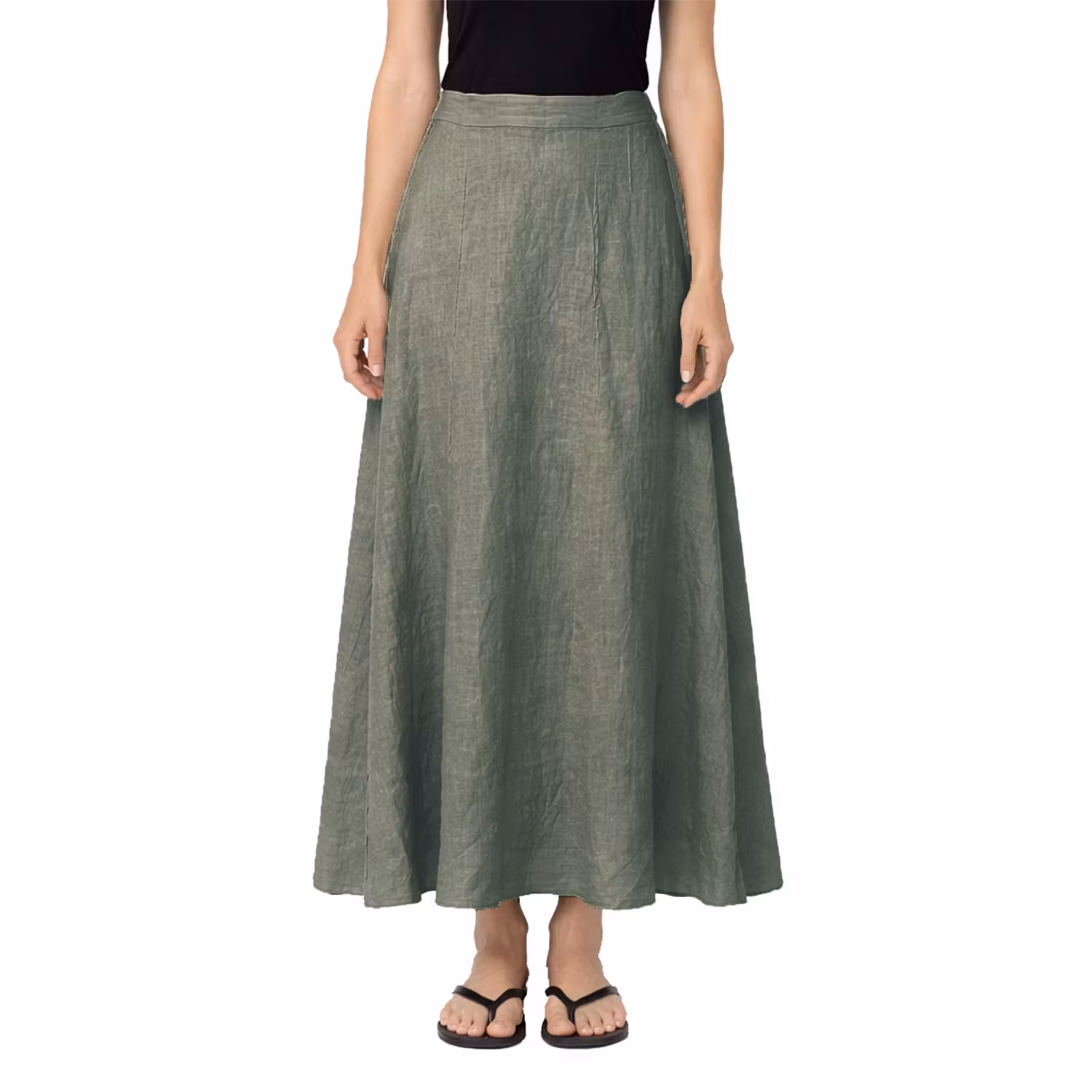 En lång kjol i rosmaringrönt linne är helt perfekt för avslappnad sommarelegans.